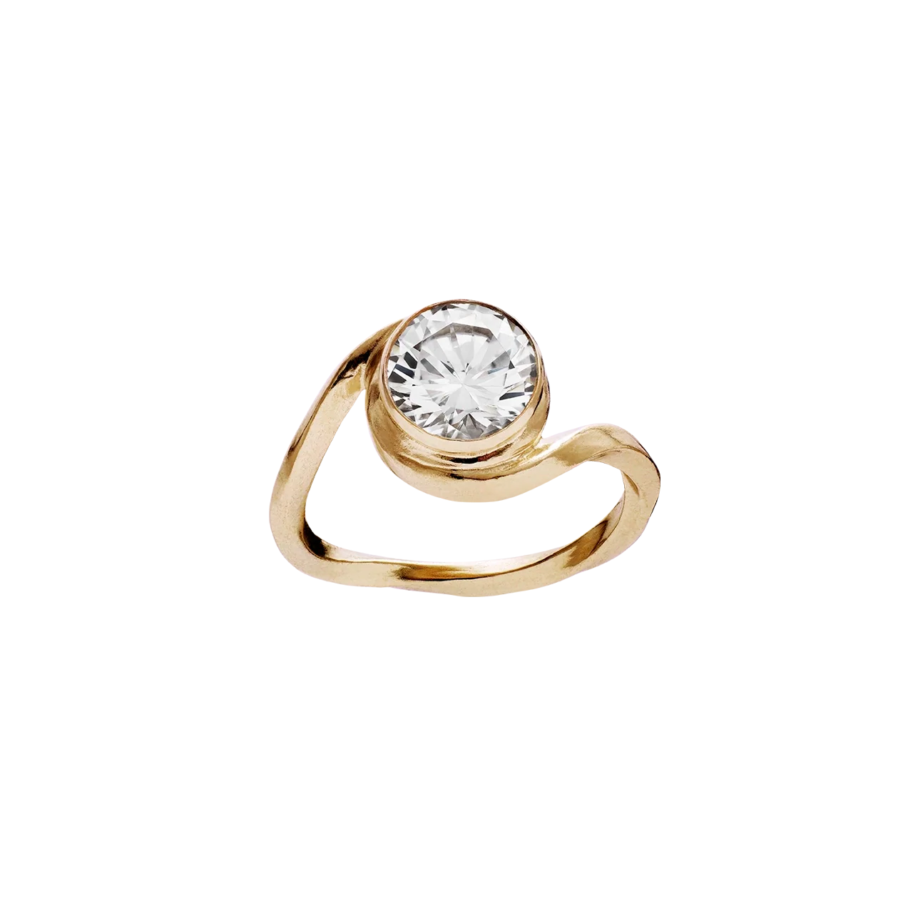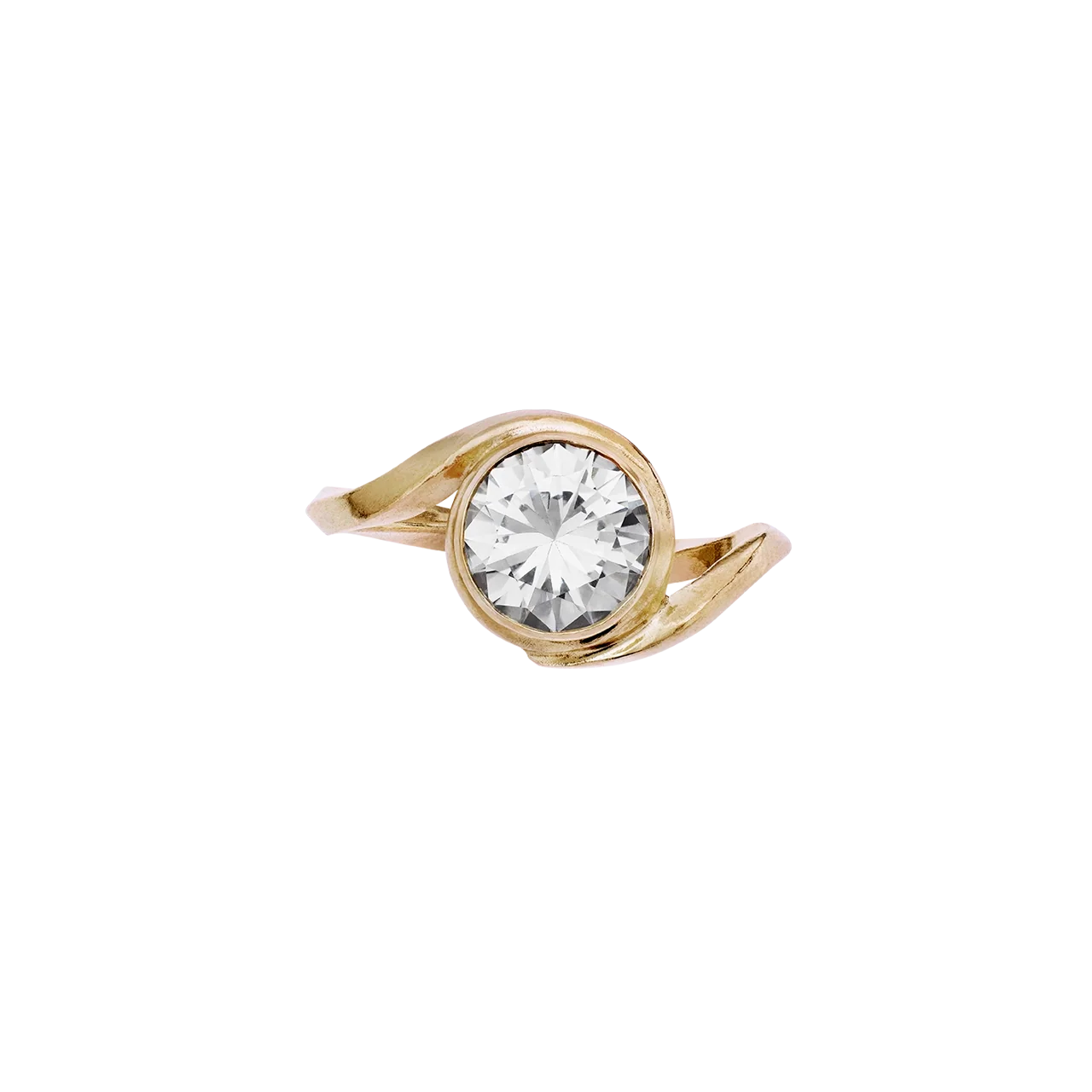 Vores Grace Ring er elegant i sin enkelhed med sit slanke, gyldne bånd, der fæstner sig organisk omkring en enkel, storslået Lab - grown diamant i en ufuldendt, men smuk spiral.