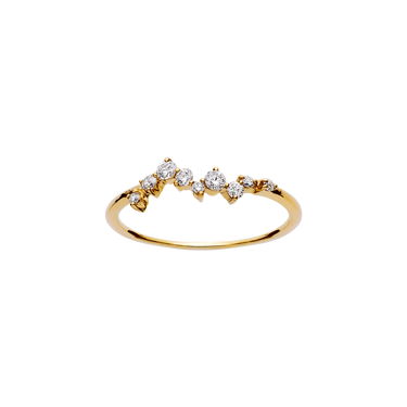 En zigzaggende synergi af smukke diamanter lige ved hånden. I Hazel-ringen bølger naturens mest fascinerende ædelsten op og ned i en naturlig bevægelse. Hazel-ringen er en del af Maanestens ‘Secret Garden’-diamantkollektion, der er inspireret af Frances Burnetts klassiker af samme navn. Her flytter den forældreløse Mary ind på et gods på den engelske hede, hvor hun opdager en hemmelig have, der rummer mere, end hun kunne ønske sig. En smuk fortælling om en smuk verden, der ses igennem hele kollektionen. Fakta: 18 karat guld og ni diamanter af i alt 0,18 karat.