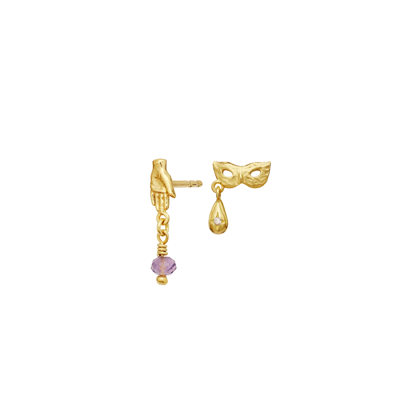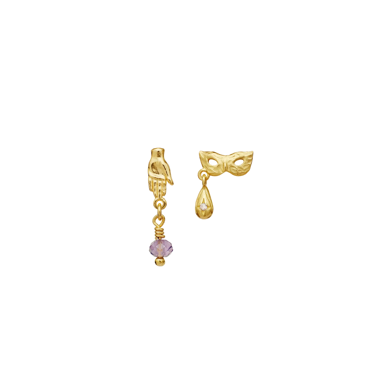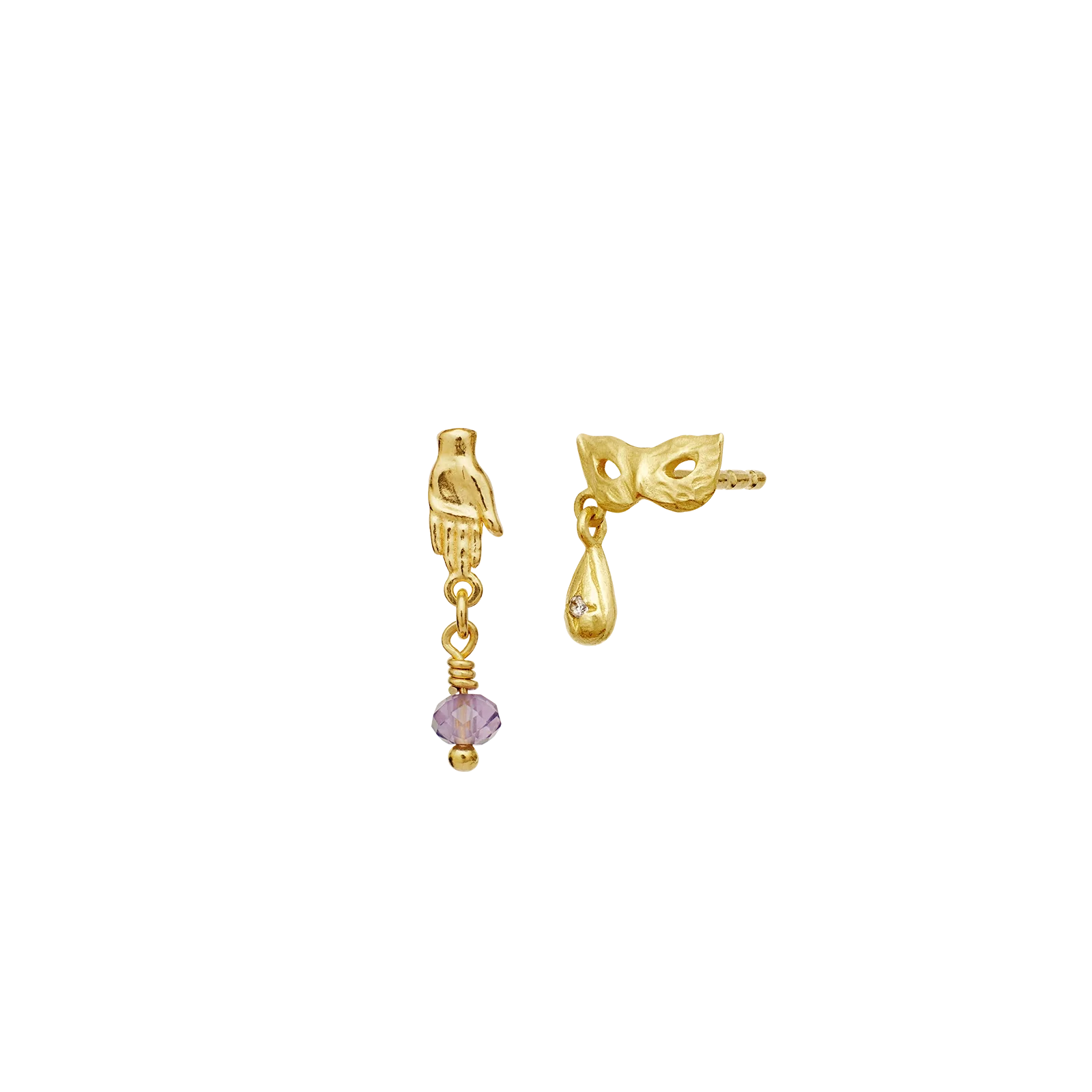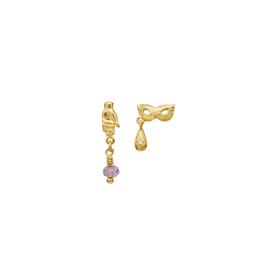 Vores Cadenta Øreringe med sin maske og elegante hånd inviterer bæreren til at gribe livet, smide hvad der holder en skjult og se på livet med spænding og kærlighed.