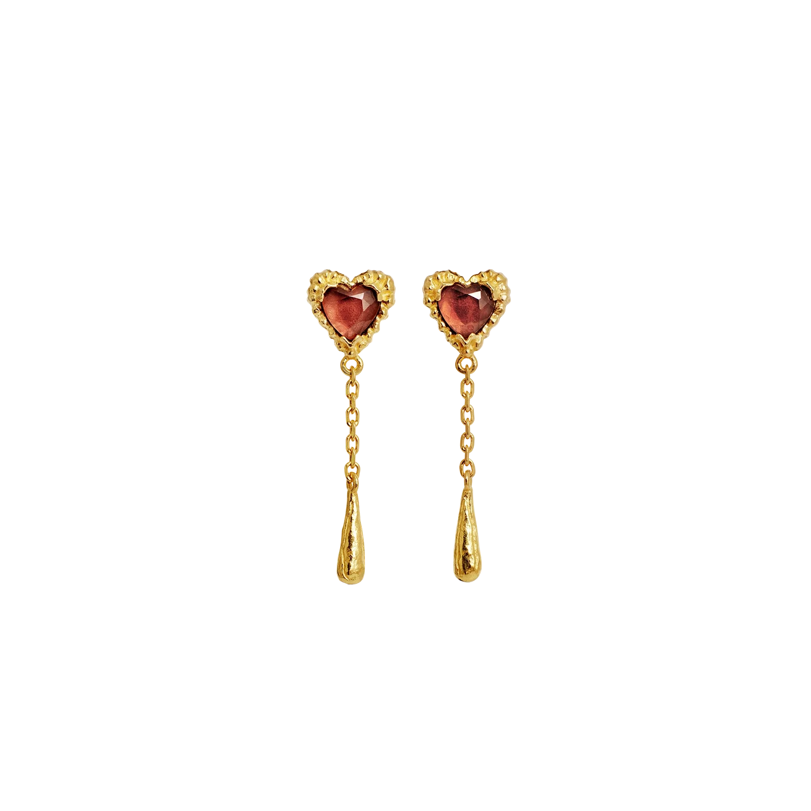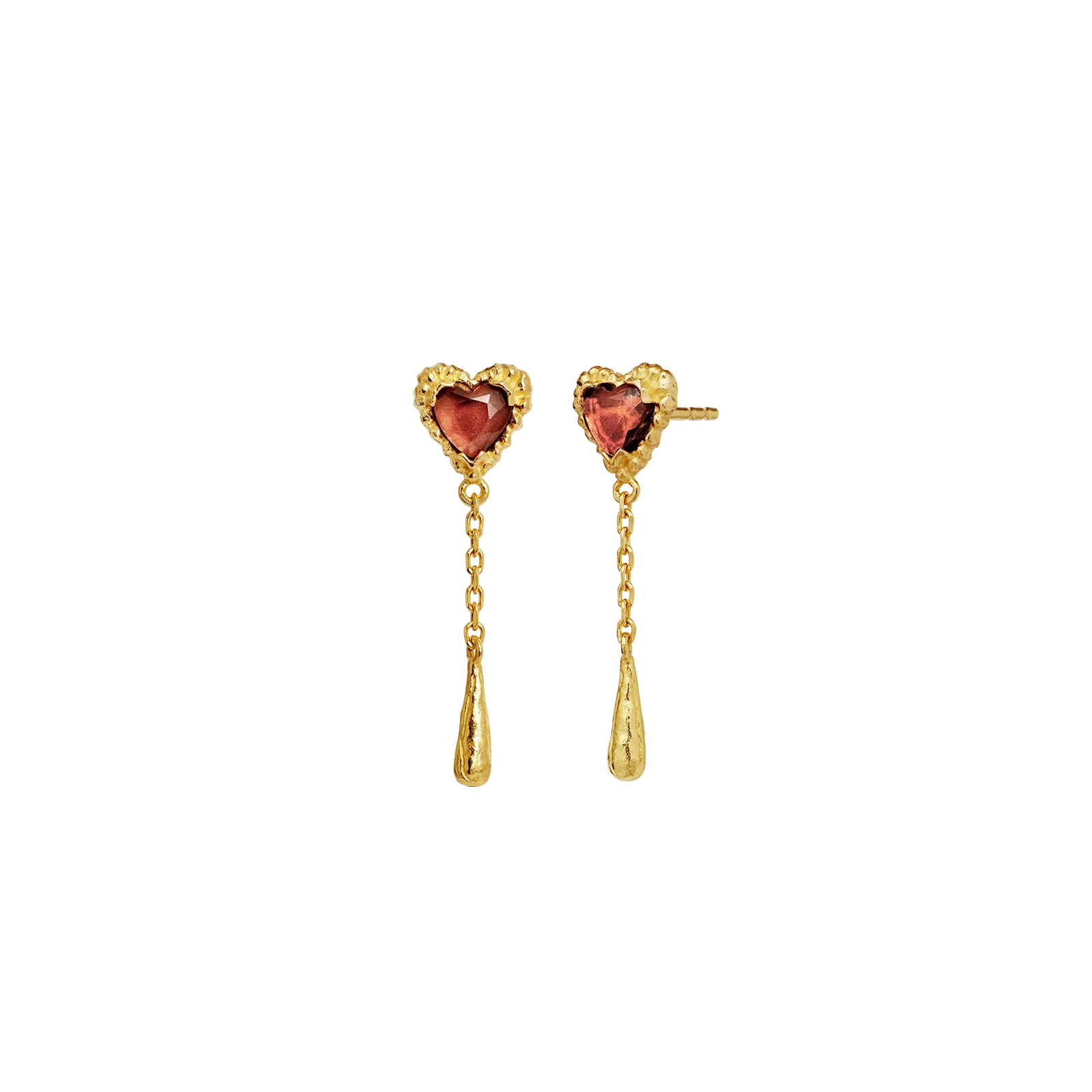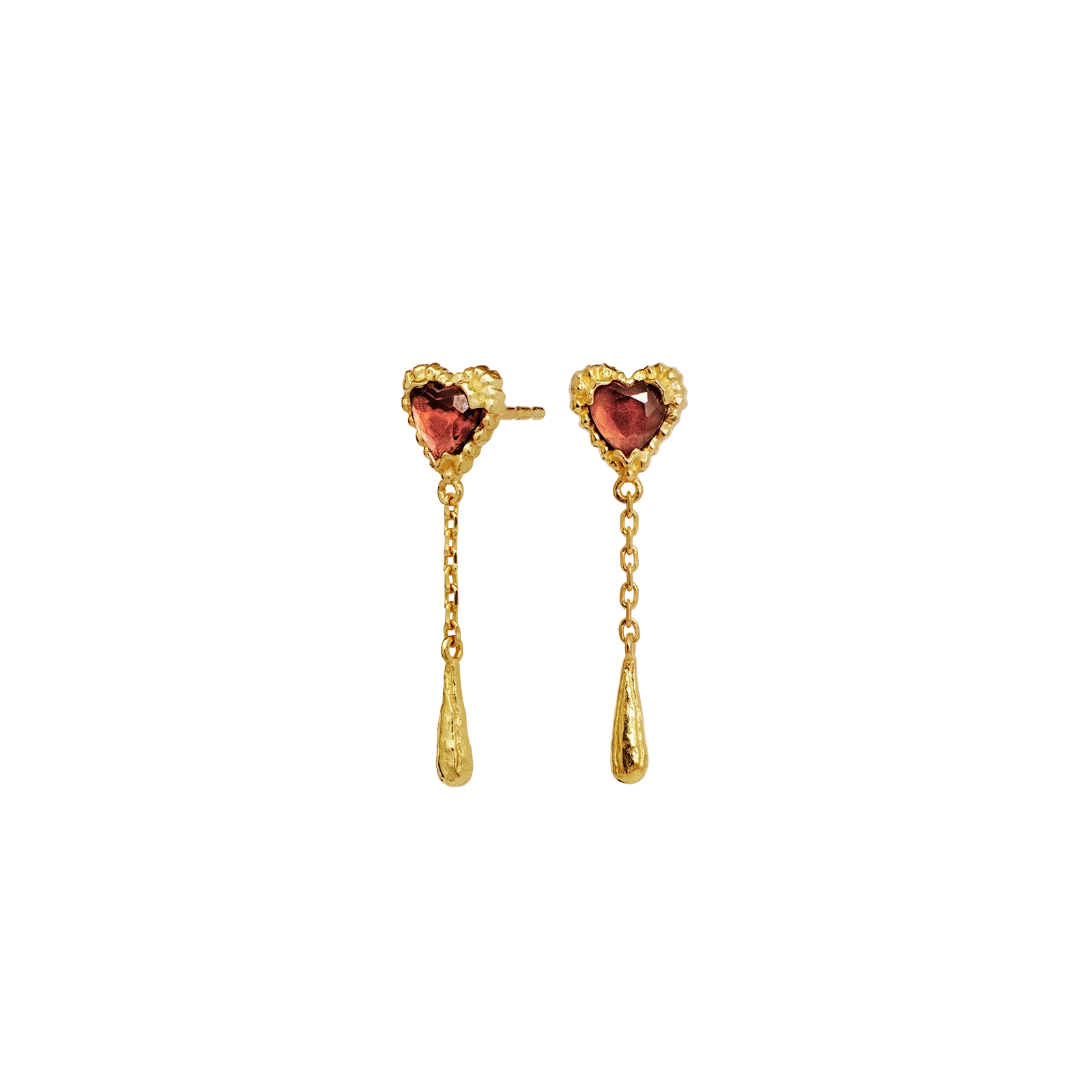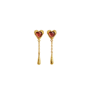 Kærligheden flyder fra vores Lady Øreringe, dryppende som gyldne tårer fra pink granat hjerter og symboliserer kærligheden.