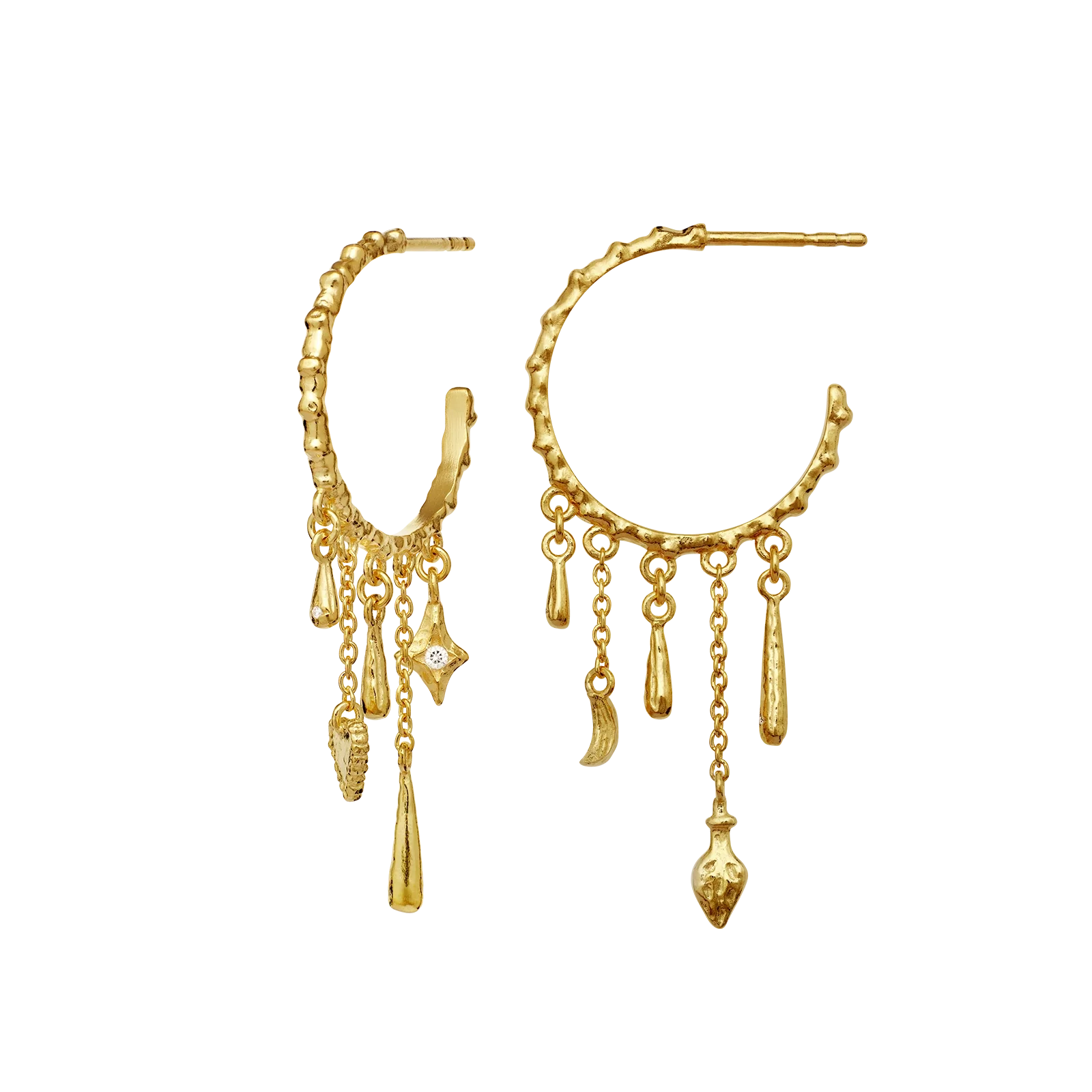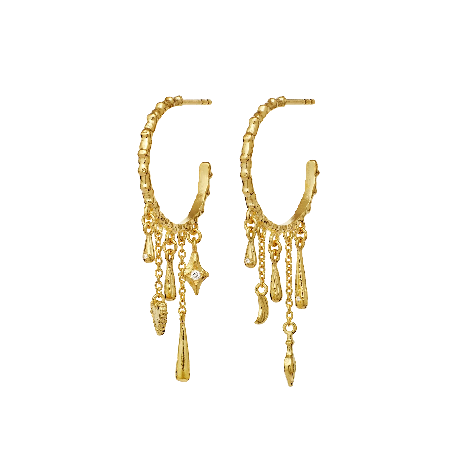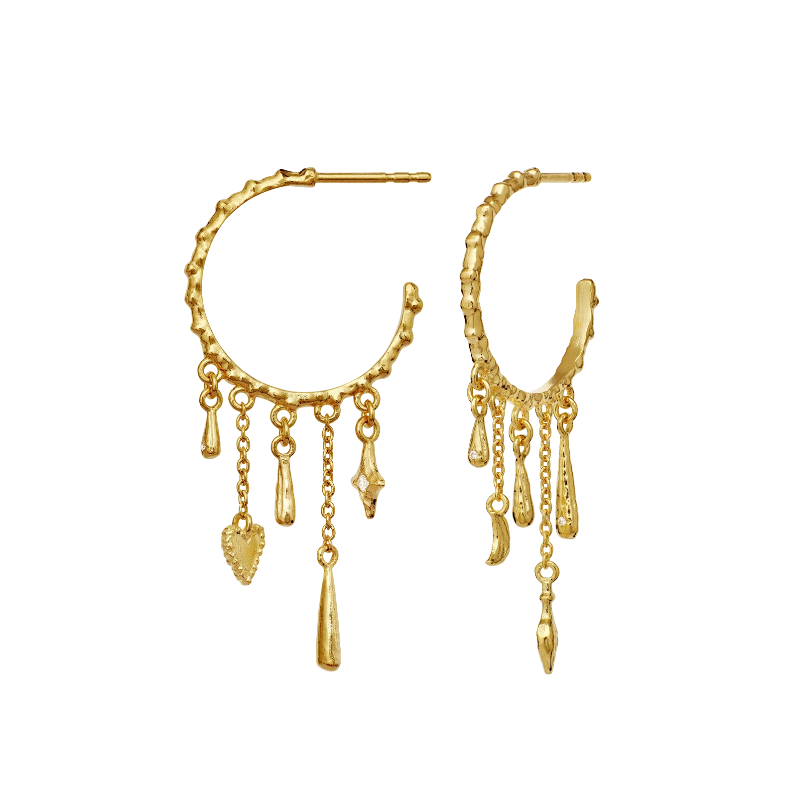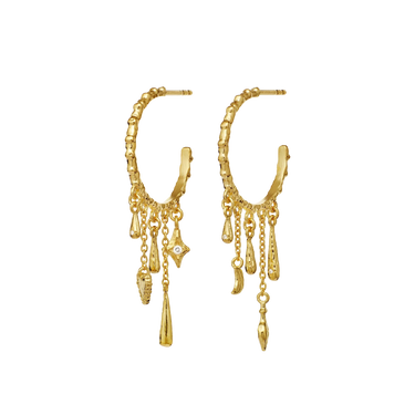 Med gyldne tråde af tårer, måner, hjerter og stjerne tager vores Verona Øreringe dig tilbage til den tidløse kærlighedshistorie mellem Romeo og Julie og deres urokkelige kærlighed til hinanden.