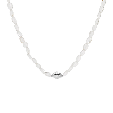 Lad dig omfavne af den dybe kvindlige energi vores Bonadea Halskæde udstråler. Den trækker rensende evner fra sin kæde af krystaller og symboliserer feminitet og kreativitet gemmen sit lille konkylievedhæng.