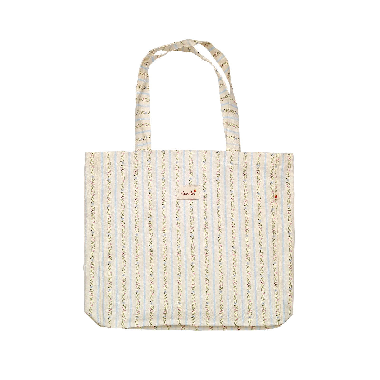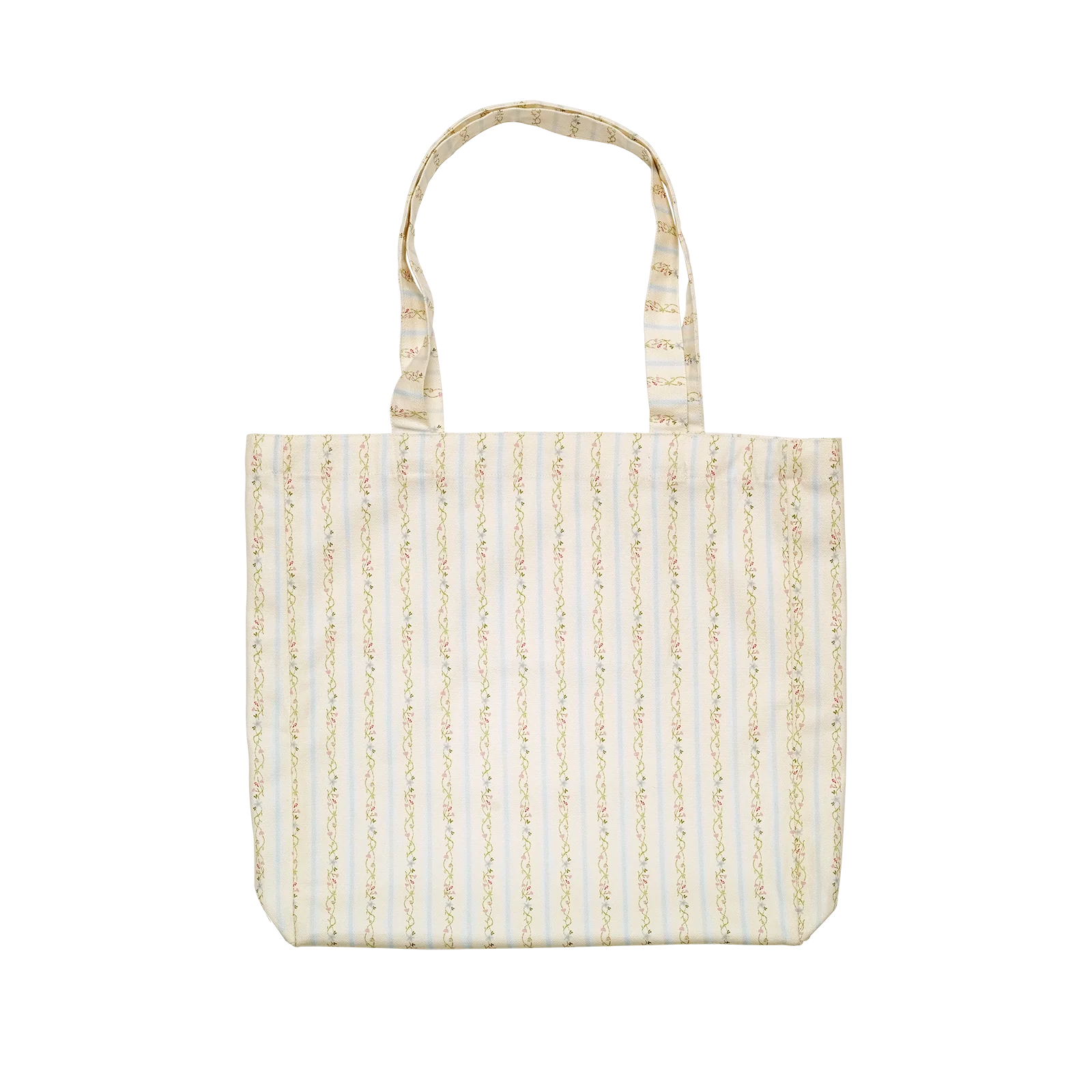 Gør dagligdagens ærinder til solrige eventyr med vores Canvas Tote Bag med friske striber og nostalgiske blomster.