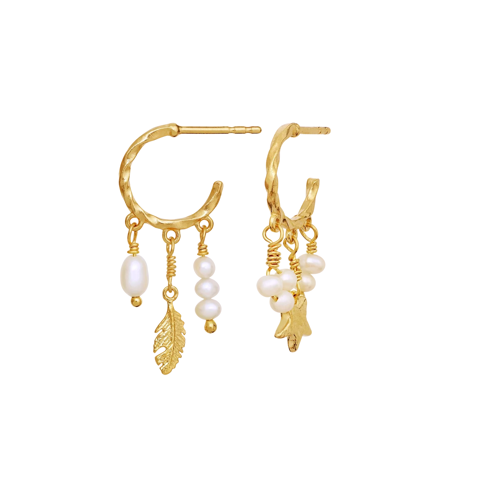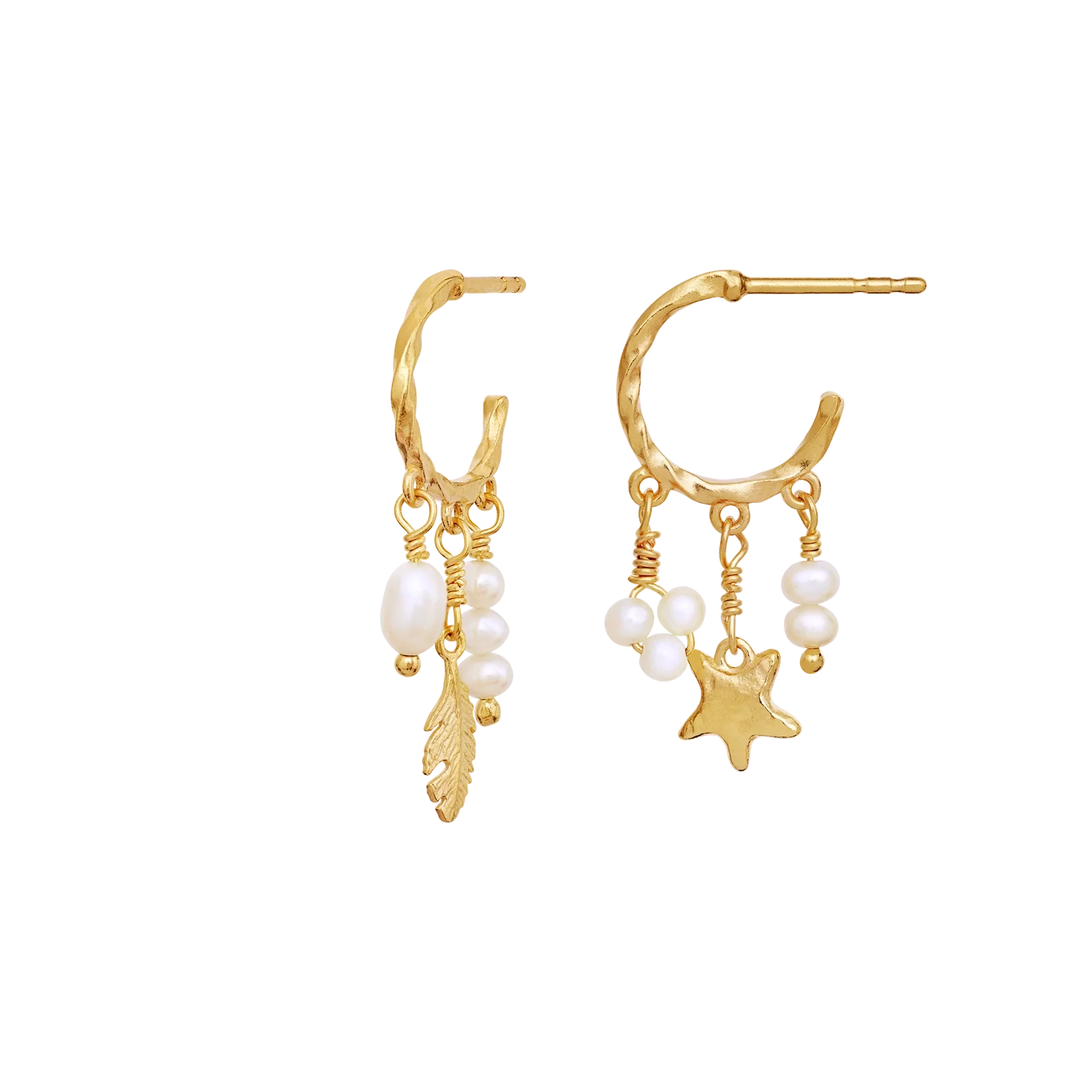 På vores Susu Øreringe vajer stjerner, fjer og perler sagte fra kurvede ringe og vækker minder om skaller og sten på snor, som danser i en sval sommerbrise.