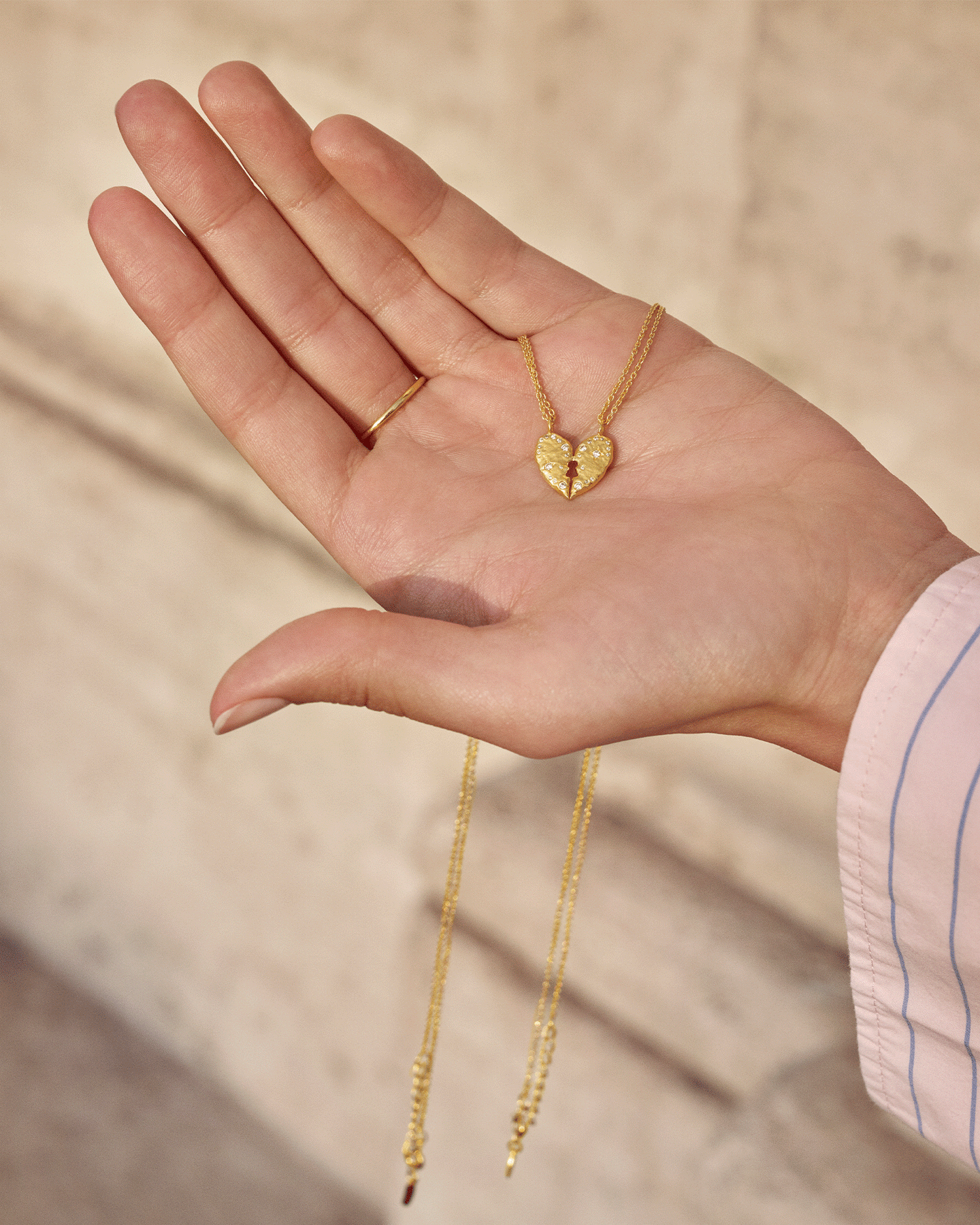 To halve giver en hel i Keeper halskæden. Med sin dobbelte kæde og to halve hjerter, kan du enten beholde hele herligheden selv, eller dele den med en du holder af.