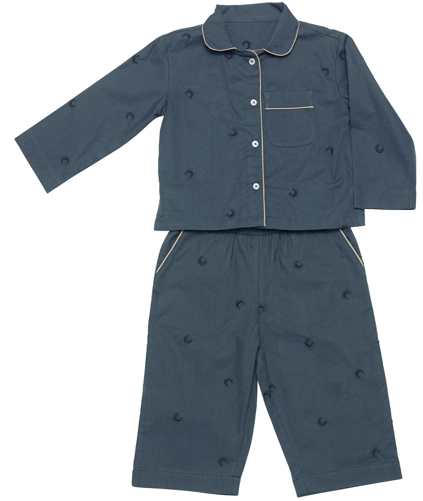 Maanesten Loungewear er lavet i 100% økologisk bomuld til både børn og voksne. Køb dem i Sand eller Navy. Sættet består af pyjamasskjorte og bukser – og lige nu får du et gratis børnesæt med (værdi 550 kr.).