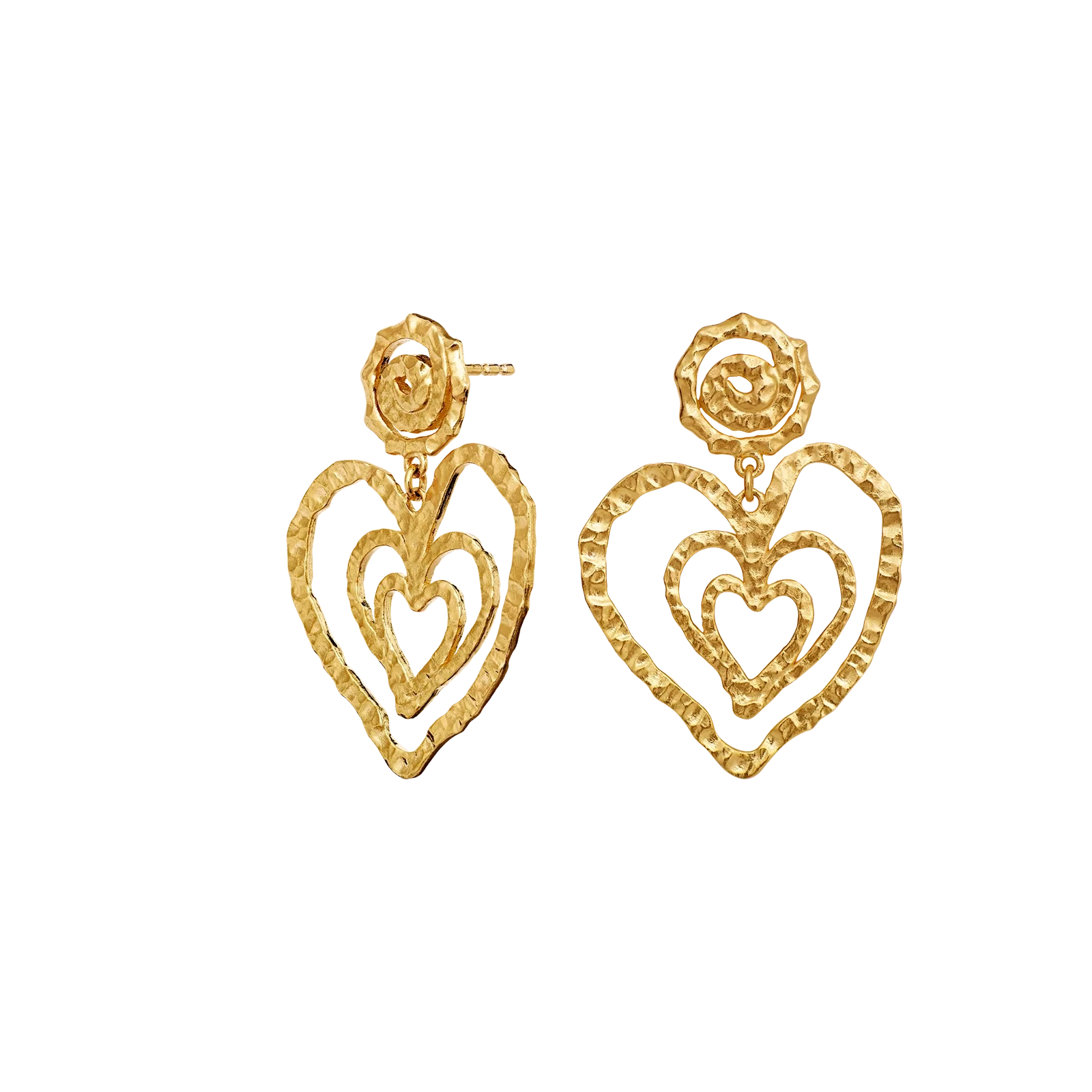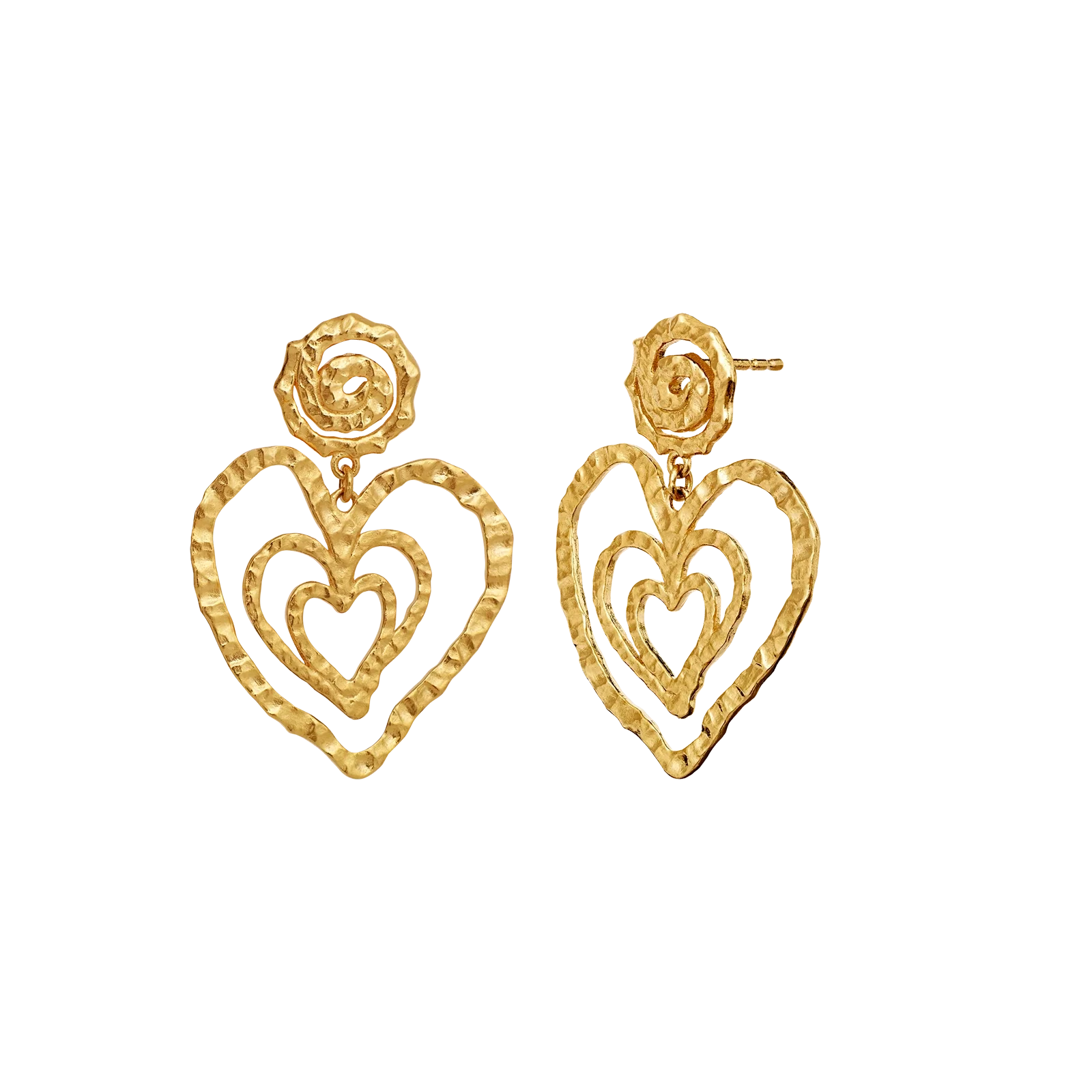 Kærlighed kender ingen grænser i vores Beate Øreringe, hvor et hjerte afløser det næste, som en blid påmindelse om, at den kærlighed, vi giver, spreder sig som ringe i vandet.