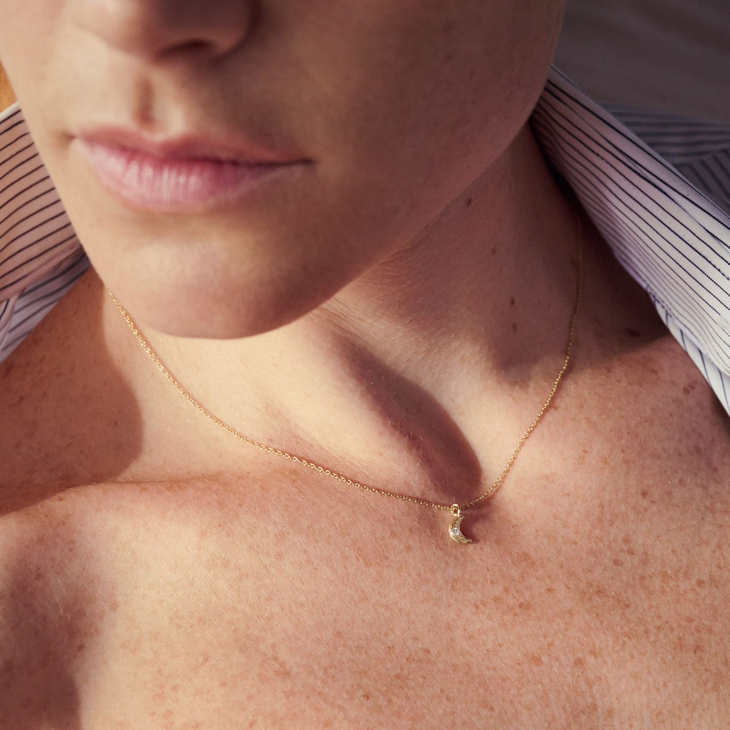 Tillad dig selv at rejse hinsides det, du kan forestille dig. Vores Journey Halskæde, smykket med et halvmånevedhæng, er en ode til den smukke uvished, der venter på livets evigt foranderlige vej.