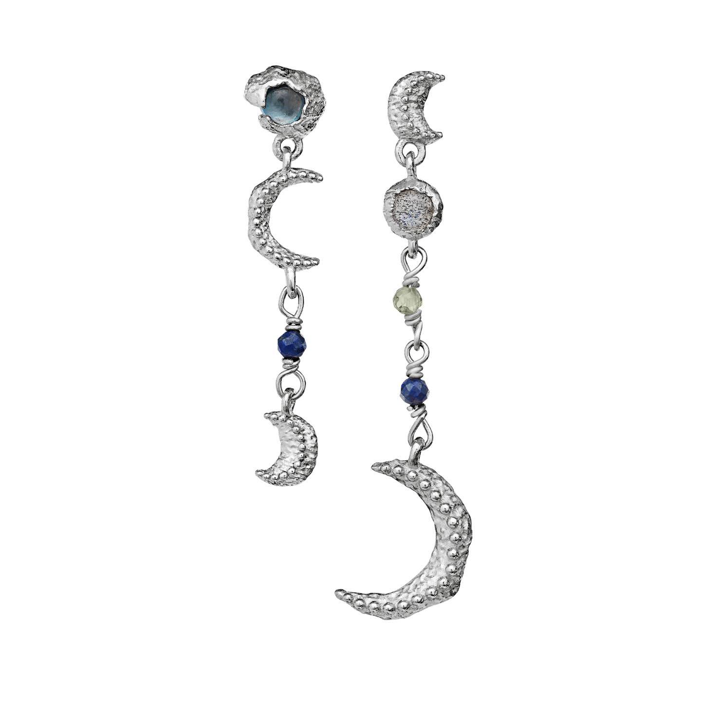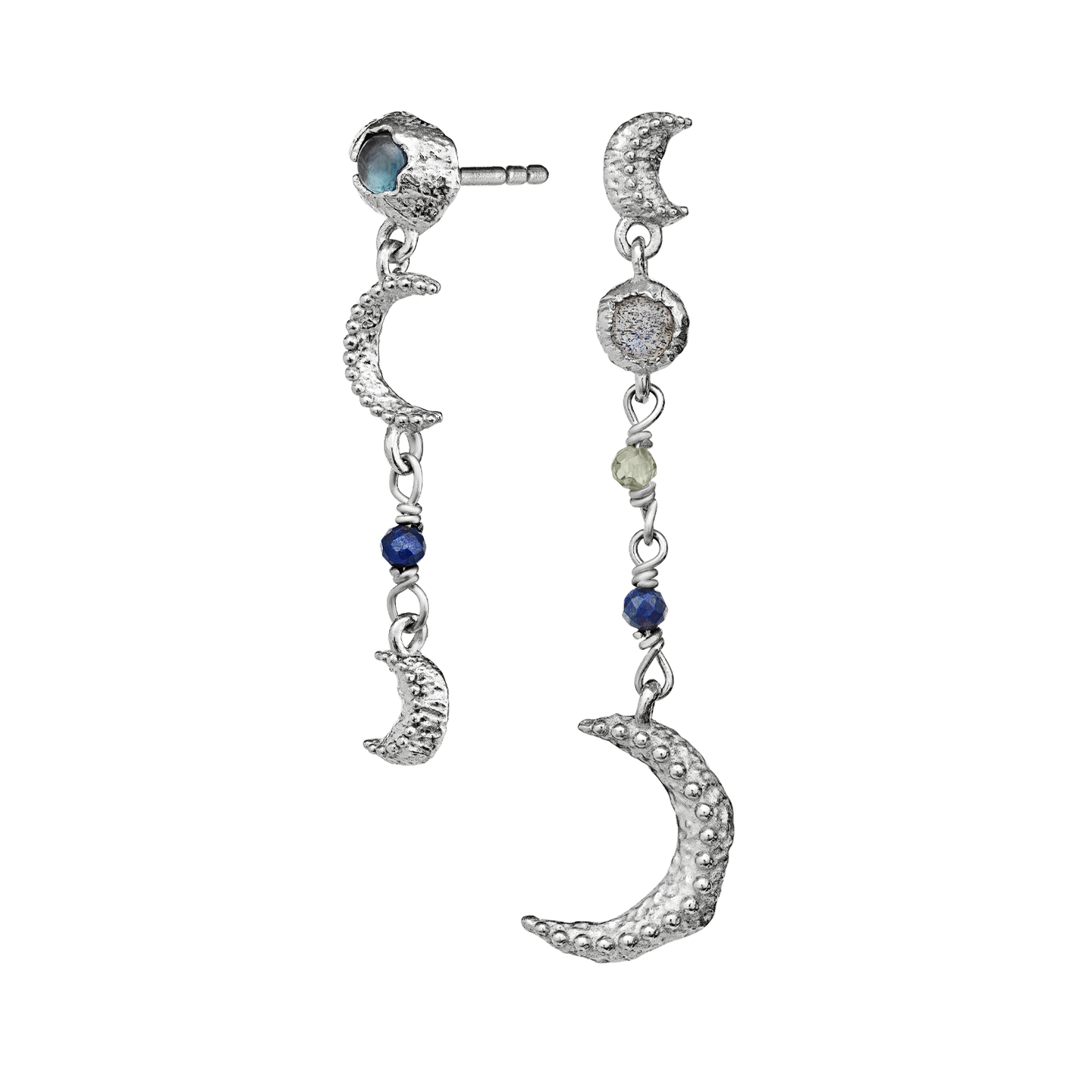 Maanestens sølvsmykker er lavet i genanvendt sterling sølv (925) og ofte kombineret med ædelsten – naturlige materialer, der holder sig smukke med lidt omtanke.