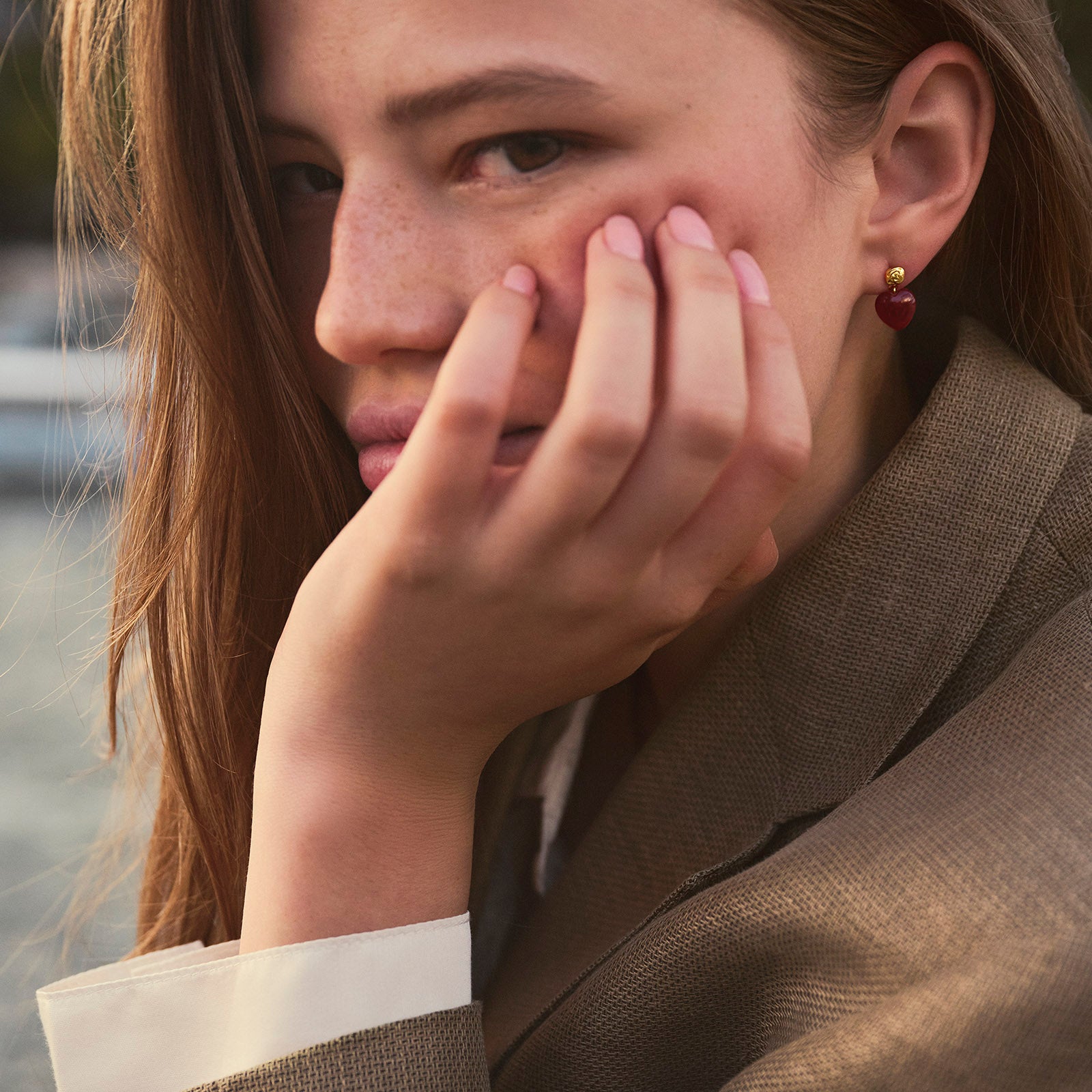 Skab et diskret romantisk look med Rubina Heart Earrings. Den lille hjerteform tilfører varme og blødhed til dit udtryk og gør dem perfekte til hverdagsbrug eller som et underspillet modspil til mere markante smykker. Fremstillet i genanvendt sterlingsølv eller forgyldt med 18 karat guld rammer de den perfekte balance mellem sødme og sofistikation – en lille påmindelse om kærlighedens subtile skønhed.